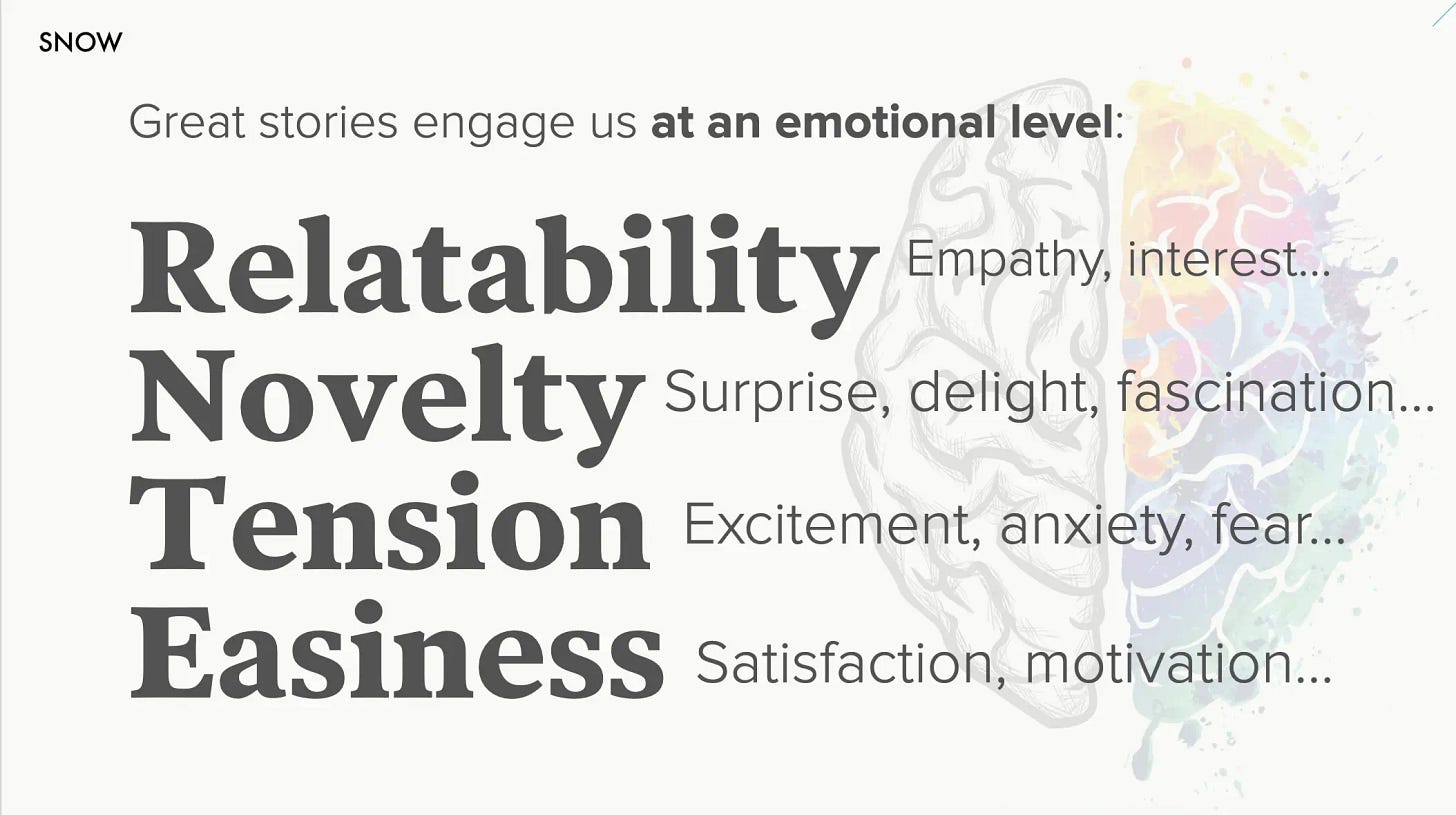 The elements are: Relatability, Novelty, Tension, and Ease of Understanding.