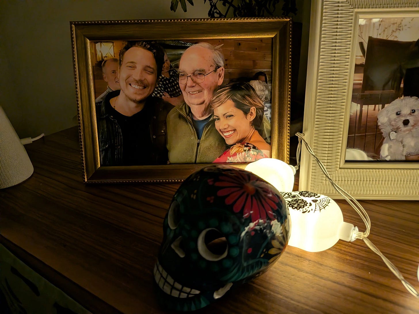 Today, I’m writing from my kitchen table, in view of my family’s “ofrenda” for Dia de Muertos. It’s a tribute to our loved ones who have died. Every year we put it up, to remember them. Two years ago, we added my grandfather’s photo to the ofrenda. This year, Grandad was joined by a family member who we lost to suicide.