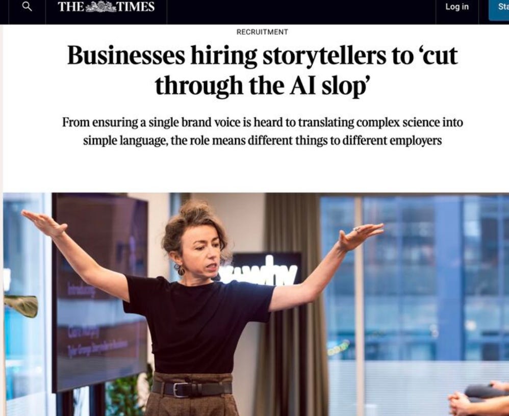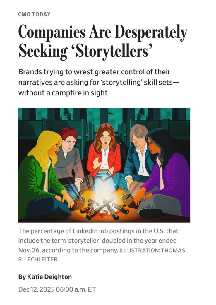 That’s because Joe is right about this super skill thing. Case in point: All the big AI companies have been hiring storytelling executives lately. Chief Story Officer. Head of Brand Storytelling. Etc. And they’re hiring them for massive salaries.